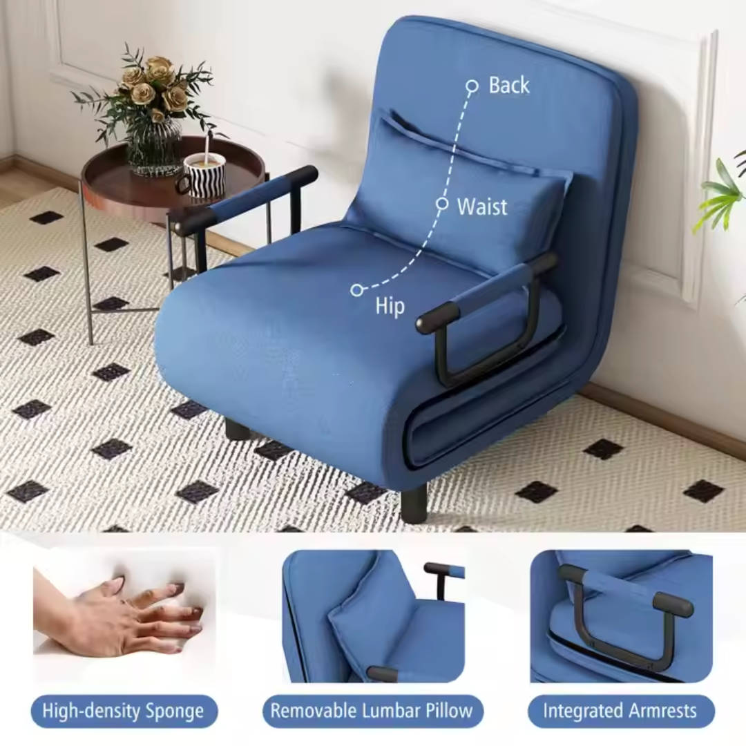 Iščete udobno, praktično in sodobno rešitev za majhen prostor? Tale kavč postelja 3u1 je popolna mešanica kompaktnost in udobje.. Takoj se iz naslanjača spremeni v ležalnik ali posteljo, odvisno od tega, ali potrebujete prostor za branje, počitek ali spanje.