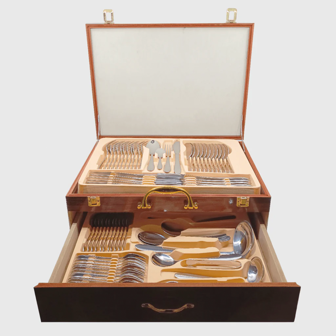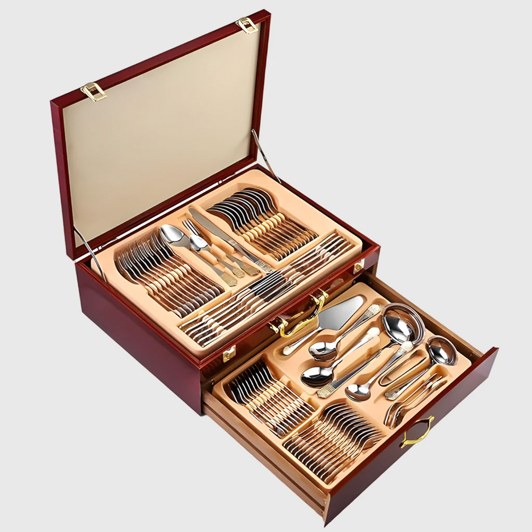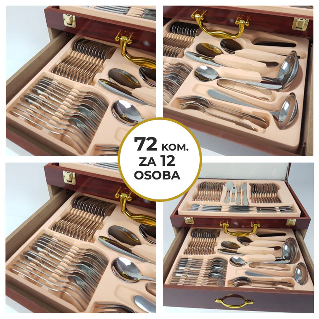 ✨ Ta 72-delni set jedilnega pribora v elegantnem kovčku je popoln za vse priložnosti, od svečanih večerij do vsakodnevnih obrokov. 🌟