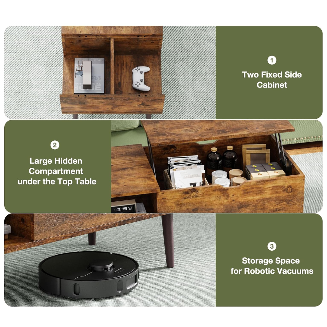 Dvižna plošča jo spremeni iz klasične klubske mizice v funkcionalen prostor za delo, obrok ali učenje – brez zapuščanja kavča. -