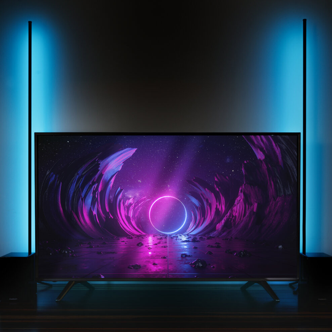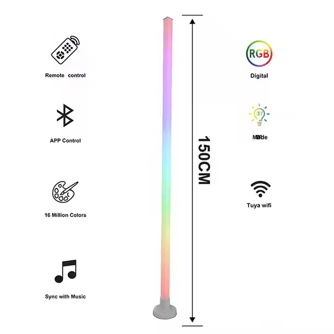 Ta svetilka s nastavljivo višino do 135 cm in RGB lučmi, ki omogočajo prikaz do 16 milijonov barv, je popolna za prilagajanje vzdušja v dnevni sobi.