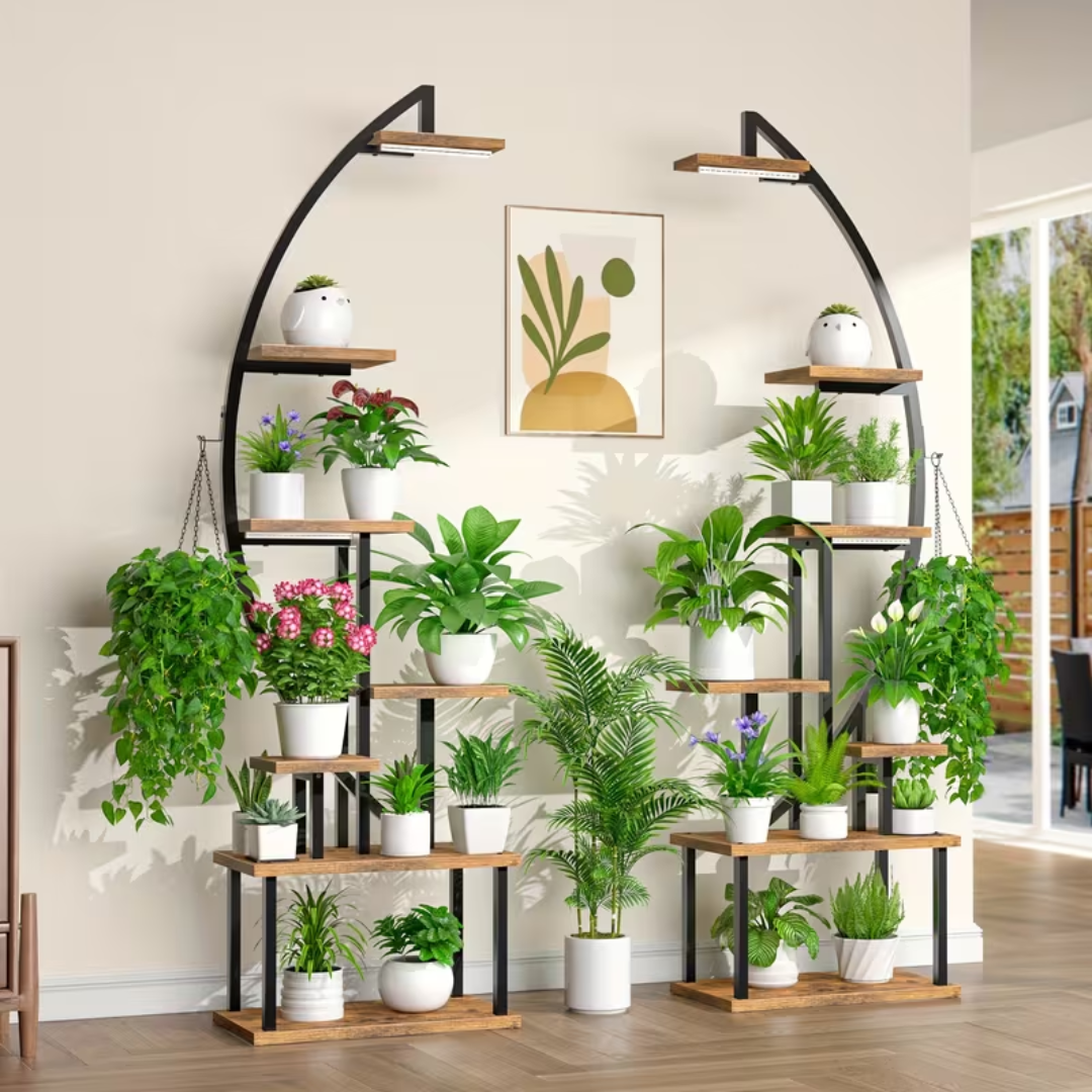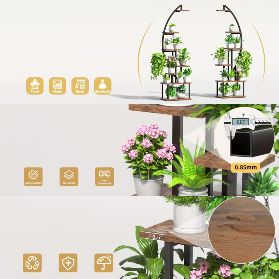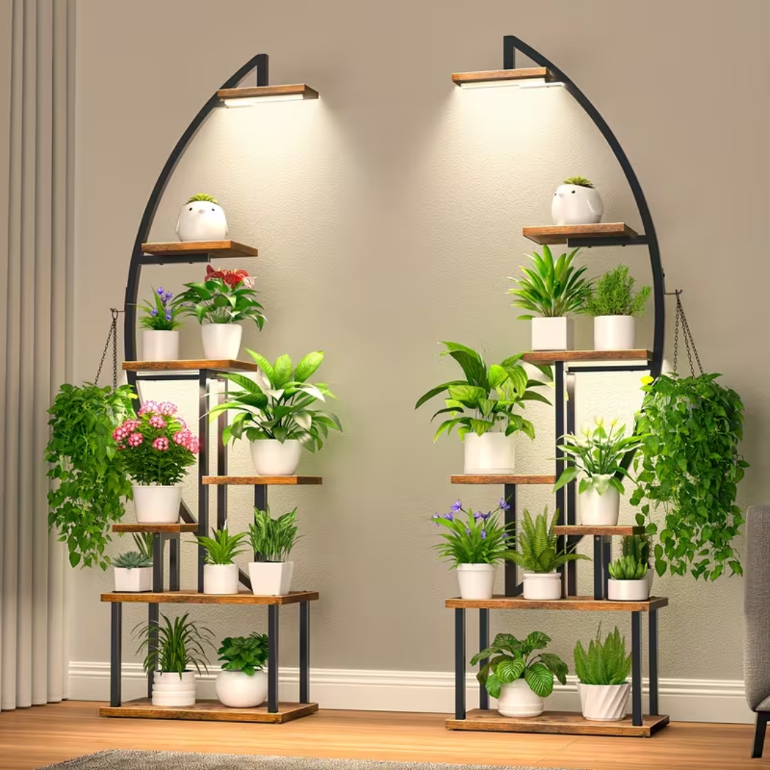 Če želite eleganten rastlinski stojalo, ki hkrati prihrani prostor in zagotavlja optimalne pogoje za rast, to model s 7 nivoji je idealna izbira. Za razliko od večjih modelov je ta različica bolj kompakten in vizualno lažji, zaradi česar je kot nalašč za apartmaje, koti dnevne sobe ali manj balkonov.