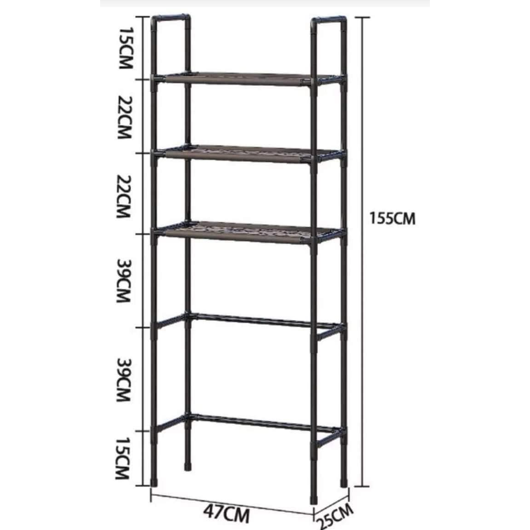 Večnamenski: Ta stalak je vsestranski in ga lahko uporabljate nad WC-jem in pralnim strojem za shranjevanje različnih predmetov, kot so detergenti in košare. Prav tako je odličen za postavitev cvetja in rastlin na balkonu za lep prikaz.