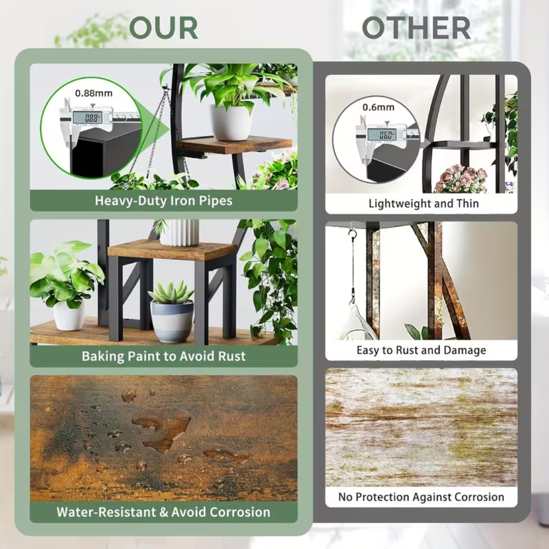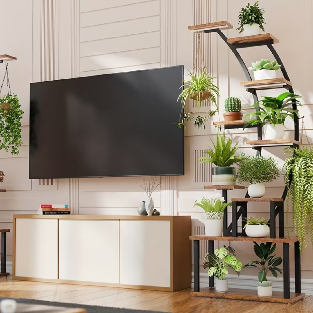Domov spremenite v majhno zeleno oazo s sodobnim rastlinskim stojalom, ki združuje oblikovanje in funkcionalnost. Oblika polmeseca daje prostor eleganten, dekorativen videz, vgrajena razsvetljava s polnim spektrom pa pomaga rastlinam uspevati, tudi kadar ni dovolj naravne svetlobe.