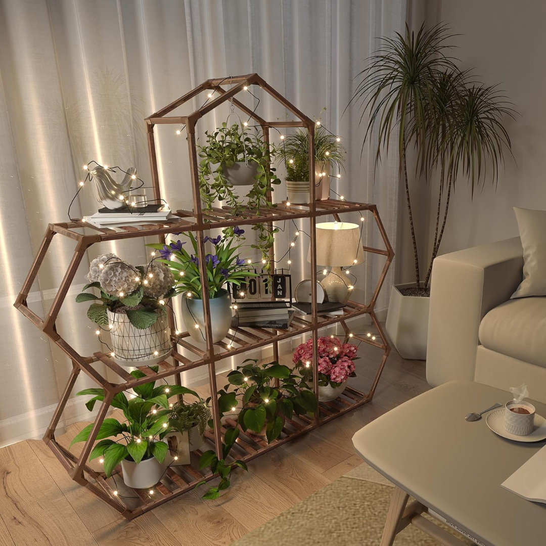 Dodajte toploto in eleganco svojemu domu ali vrtu z gradnik v obliki gradu. Ta ustvarjalni stojalo omogoča namestitev vsaj 9 prašičev z rastlinami, in zahvaljujoč odprti strukturi zagotavlja dovolj svetlobe za vsako rastlino. Kot nalašč je za kotiček za dnevno sobo, balkon, teraso, vrt ali celo pisarno.