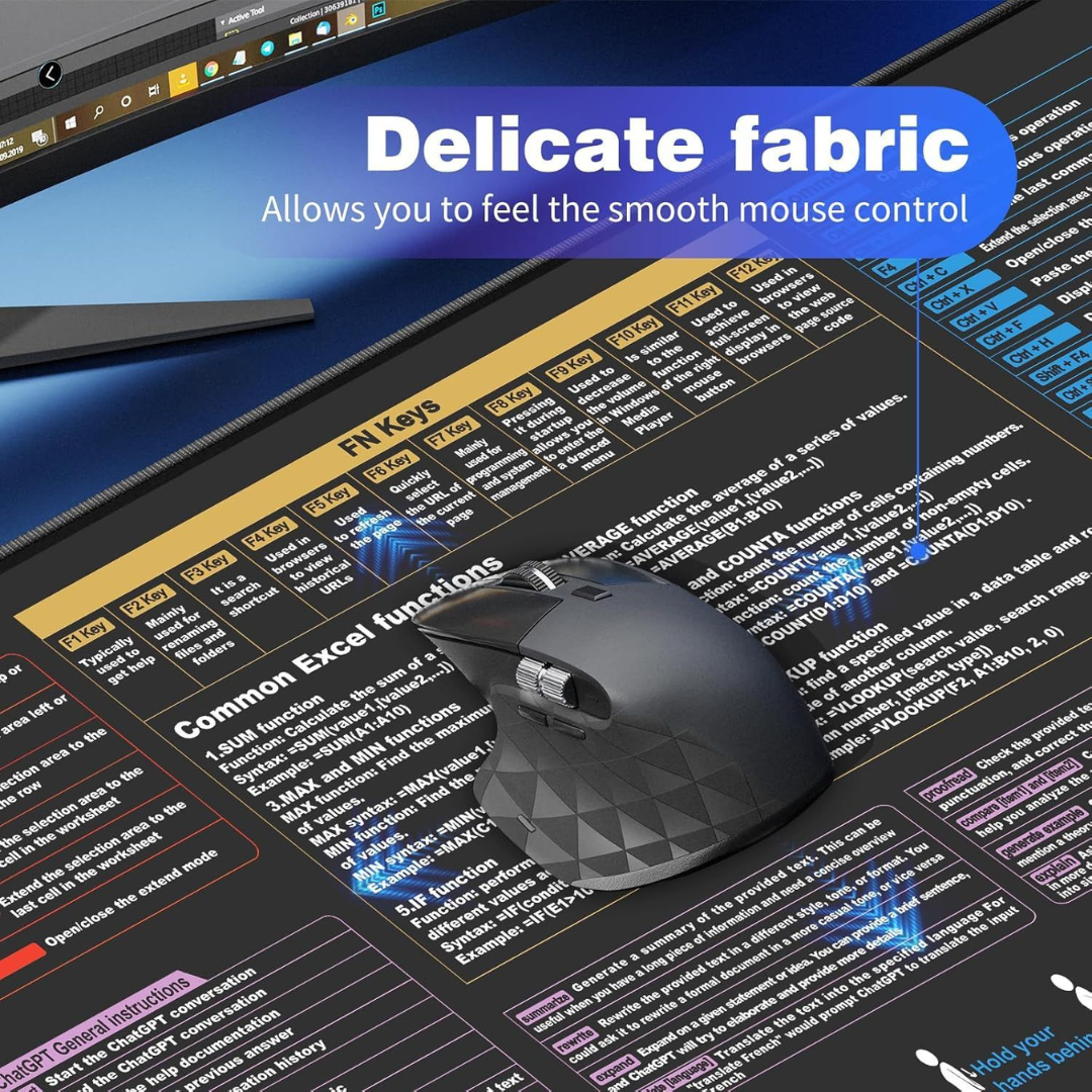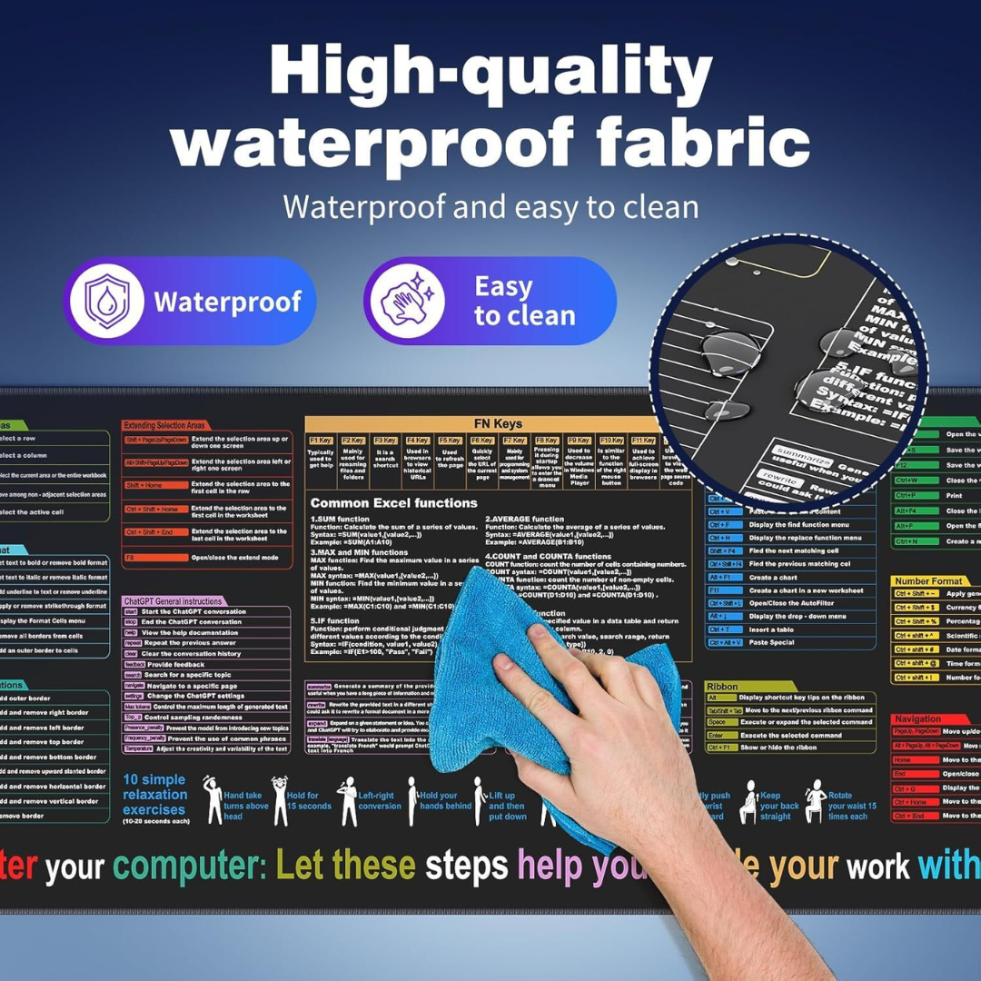 Naredite delo, učenje in igranje s tem bolj praktično velik Excelov varalni list miška padec. Poleg zagotavljanja udobne in prostorne tipkovnice in baze miške vsebuje jasno natisnjeno na njej Excelovi bližnjice in funkcije FN, zaradi česar je idealen za študente, uporabnike pisarn in igralce.