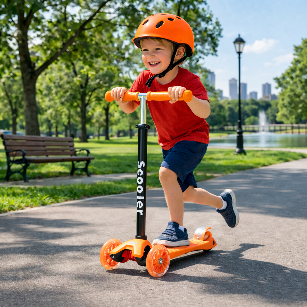 Tri kolesa in trdna konstrukcija zagotavljajo odlično ravnovesje, zaradi česar je idealen za mlajše otroke in začetnike. Široka platforma še povečuje varnost med vožnjo.